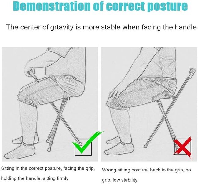 عكاز خفيف ومتين يتحول إلى مقعد مريح خلال ثوانٍ. مصنوع من سبائك الألومنيوم، بقاعدة مثلثة ثابتة تتحمل حتى 100 كجم