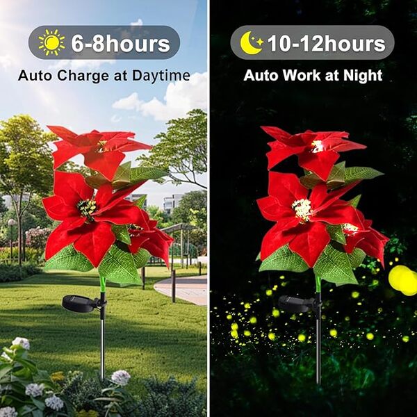 حوّل حديقتك إلى مشهد خلاب مع زهور الإضاءة الشمسية! تصميم أنيق يُشبه النباتات الحقيقية، يضيء تلقائيًا عند غروب الشمس ليضفي